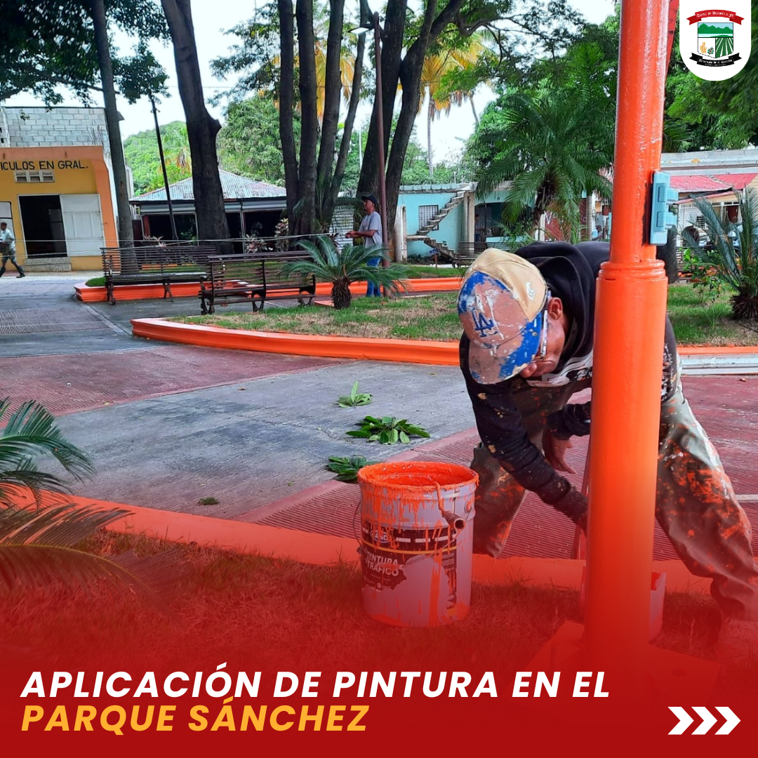 La Alcaldía, a través de su equipo de colaboradores, ha avanzado significativamente en los trabajos de pintura y mantenimiento en el emblemático Parque Sánchez.