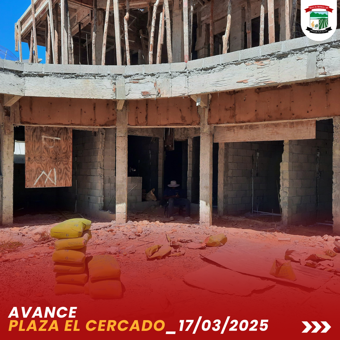 La transformación de la Plaza El Cercado sigue en marcha, marcando un hito en el desarrollo urbano del municipio. Recientemente, se ha aplicado hormigón en el segundo nivel, consolidando la estructura para su próxima fase de terminación.