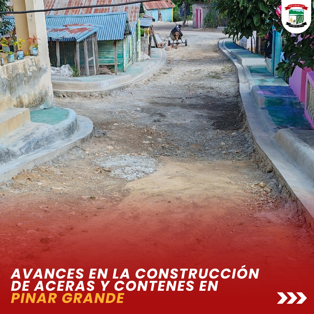 La construcción de aceras y contenes en la comunidad de Pinar Grande continúa avanzando de manera significativa. Los trabajos incluyen la nivelación del terreno y el vaciado de hormigón, garantizando mayor seguridad y mejor movilidad para los residentes.