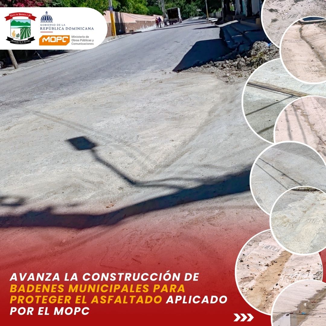 La alcaldía continúa ejecutando obras complementarias de infraestructura vial con el avance sostenido en la construcción de badenes municipales, diseñados para preservar el asfaltado recientemente aplicado por el Ministerio de Obras Públicas y Comunicaciones (MOPC).
