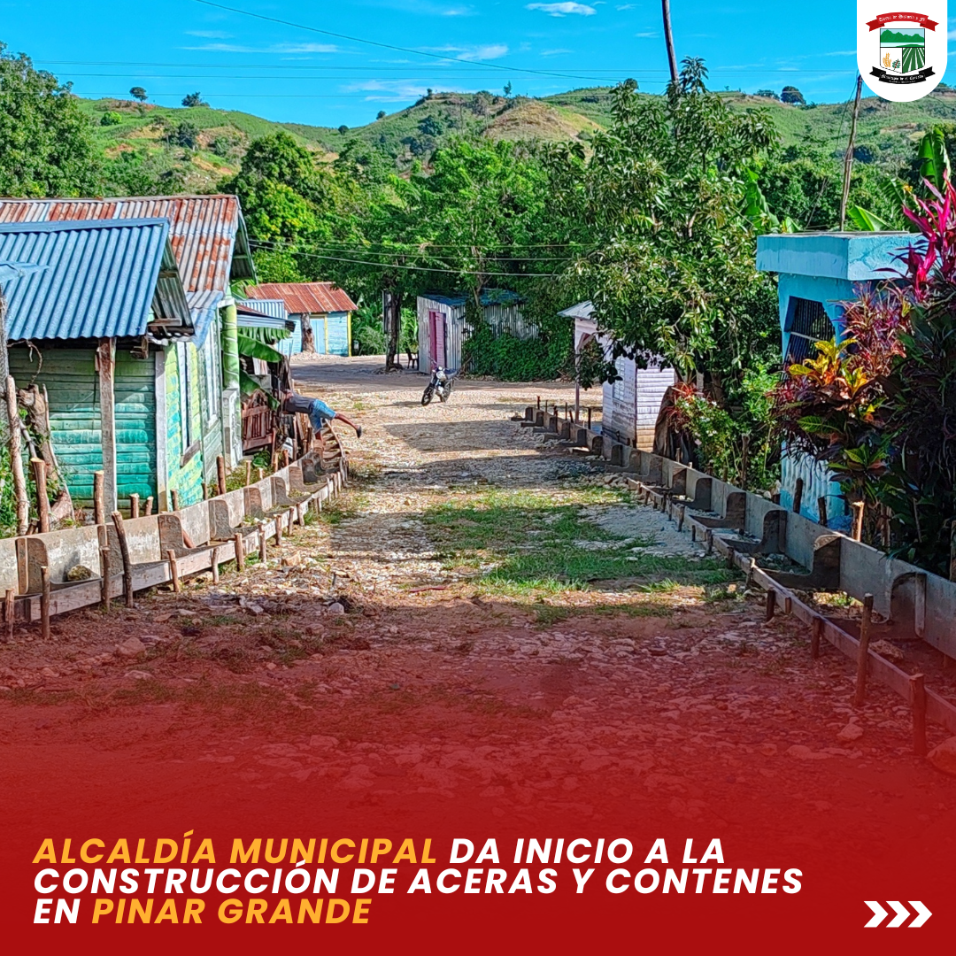 ALCALDÍA MUNICIPAL DA INICIO A LA CONSTRUCCIÓN DE ACERAS Y CONTENES EN PINAR GRANDE MANTENIMIENTO DE PODA EN EL PARQUE ADYACENTE AL CEMENTERIO MUNICIPAL Compra de Terreno Para la Construcción de un Parque en la Comunidad de Pinal Grande.