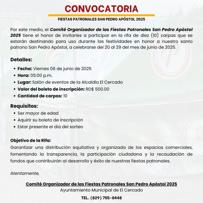 COMUNICACIÓN: FIESTAS PATRONALES SAN PEDRO APÓSTOL 2025
