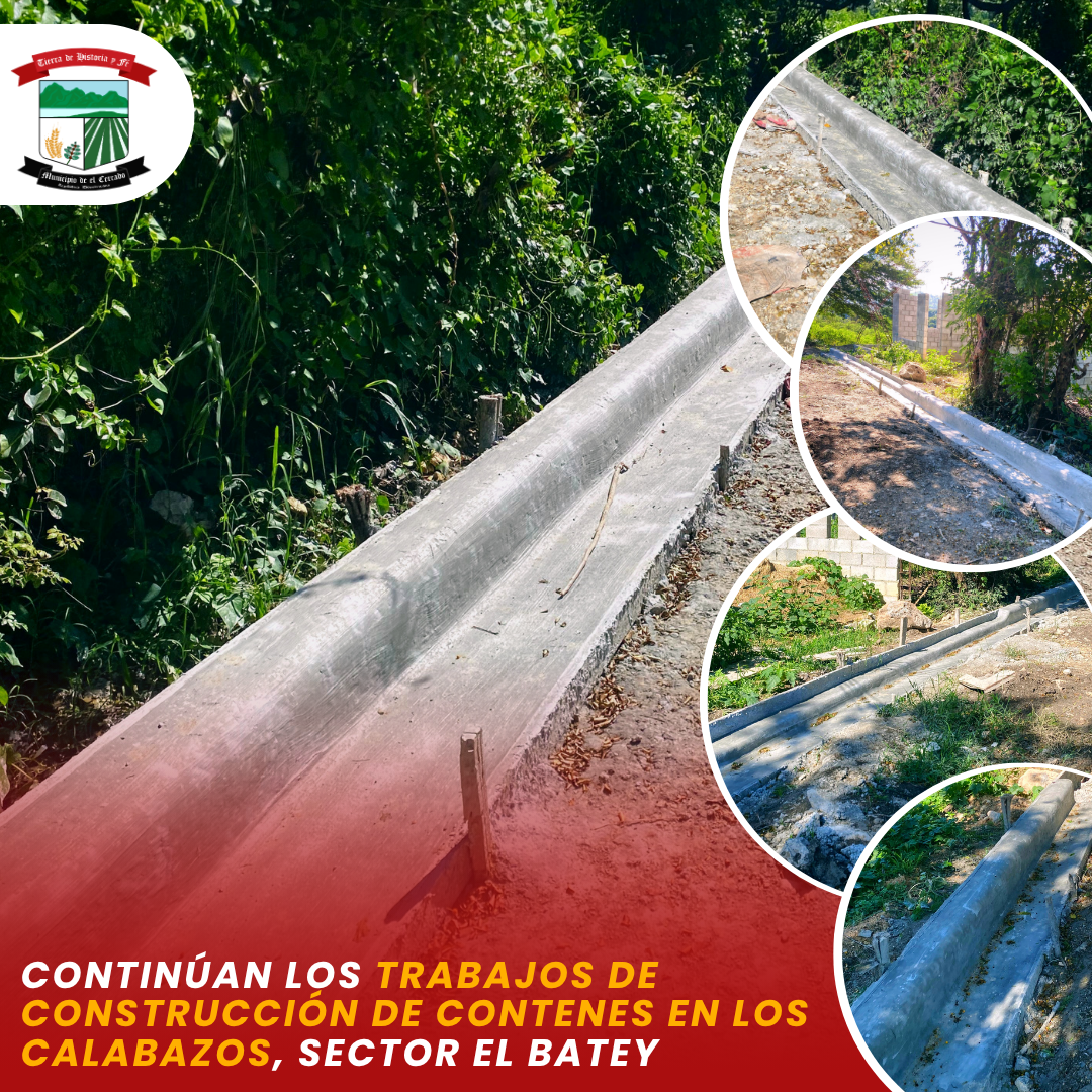 Continúan los trabajos de construcción de contenes en la sección Los Calabazos, perteneciente al sector El Batey. Esta intervención busca preparar las calles para futuras obras de asfaltado, mejorar el drenaje pluvial y contribuir al ordenamiento urbano de la zona. Los trabajos están siendo ejecutados por brigadas locales bajo la supervisión del cabildo municipal.