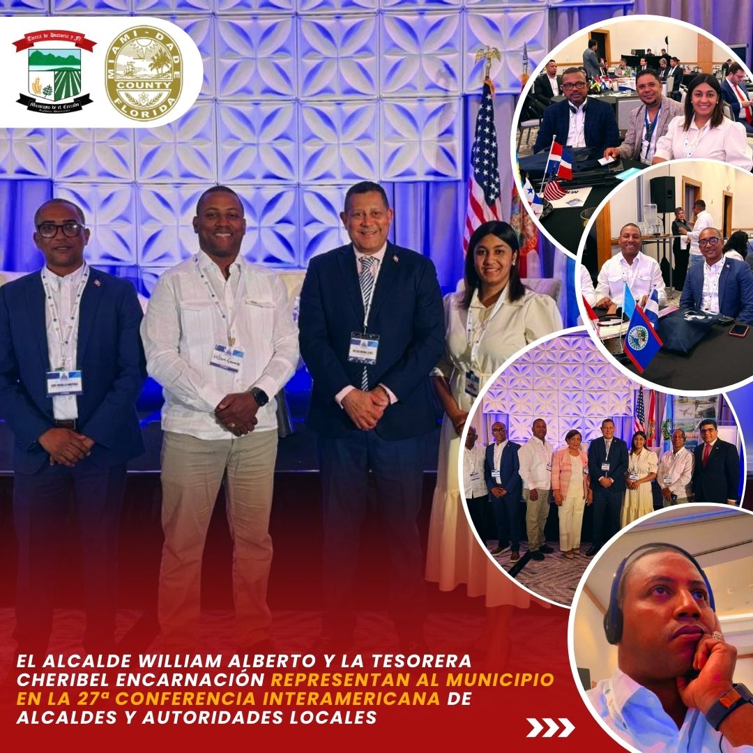 El Cercado, R.D. | 29 de septiembre de 2025 — El alcalde municipal, Lic. William Alberto Garabito, junto a la Licda. Cheribel Encarnación Mateo, tesorera municipal, se encuentran en la ciudad de Miami, Florida, para participar en la 27ª Conferencia Interamericana de Alcaldes y Autoridades Locales, un evento de alto nivel que reúne a líderes municipales de toda América Latina, el Caribe y Estados Unidos.