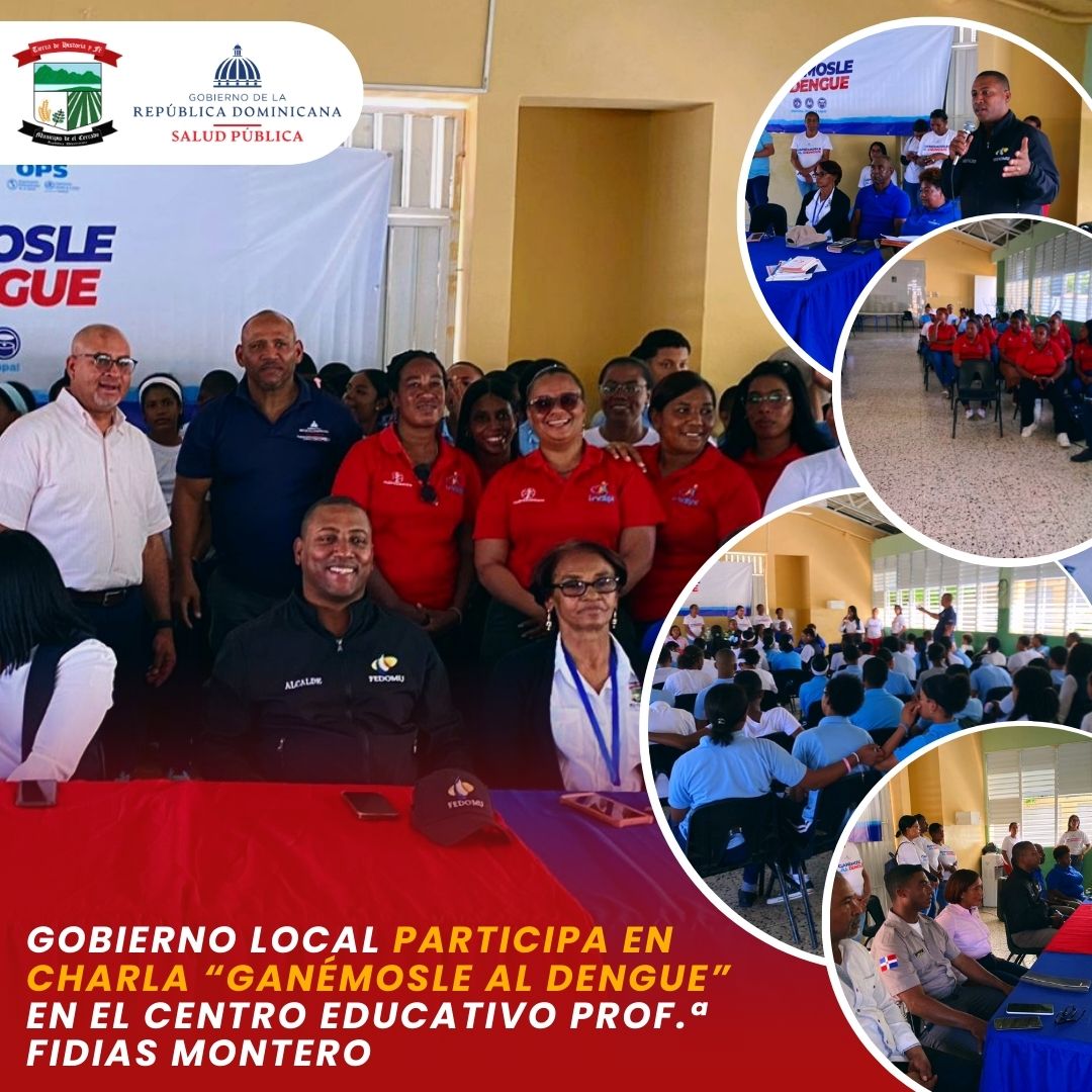 El gobierno municipal participó este jueves en la charla educativa “Ganémosle al dengue”, realizada en el Centro Educativo Prof.ª Fidias Montero, como parte de las acciones preventivas en coordinación con el Ministerio de Salud Pública y otras entidades vinculadas a la promoción de la salud.