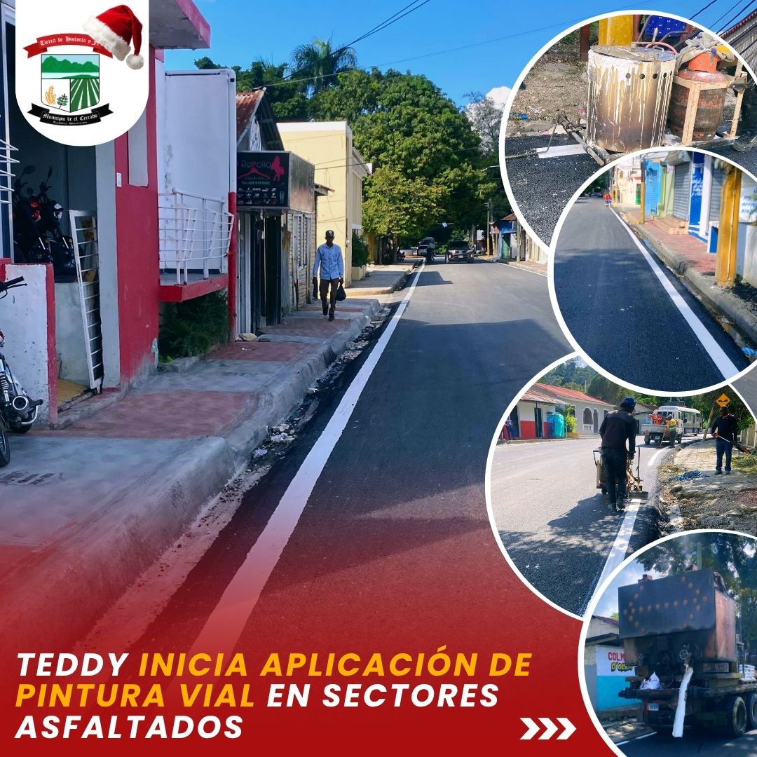 MOPC, a través de la empresa constructora Teddy, inició la aplicación de pintura vial en las calles de los sectores que fueron asfaltados recientemente en el municipio.