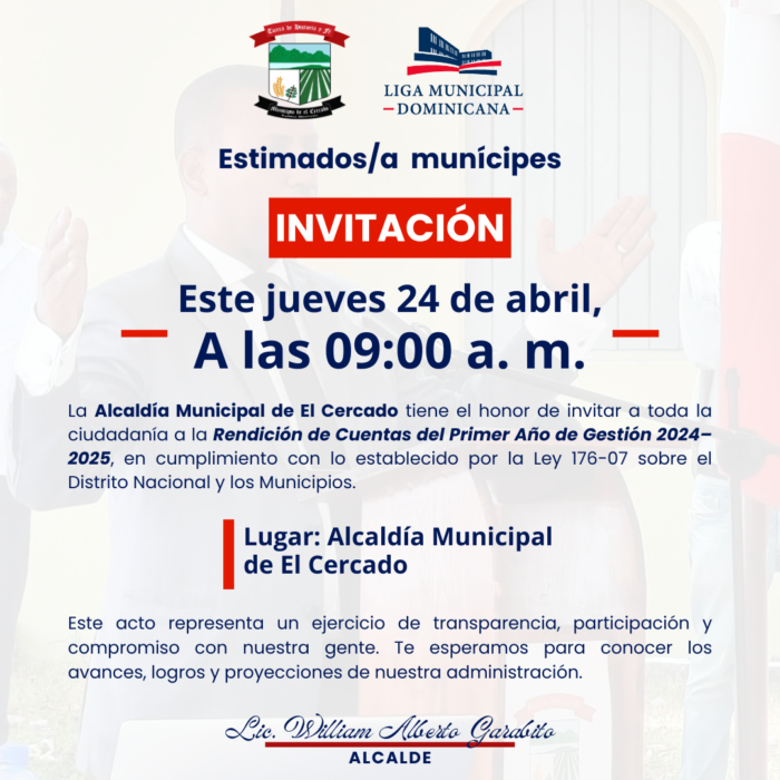 INVITACIÓN A LA RENDICIÓN DE CUENTAS DEL PRIMER AÑO DE GESTIÓN MUNICIPAL 2024–2025