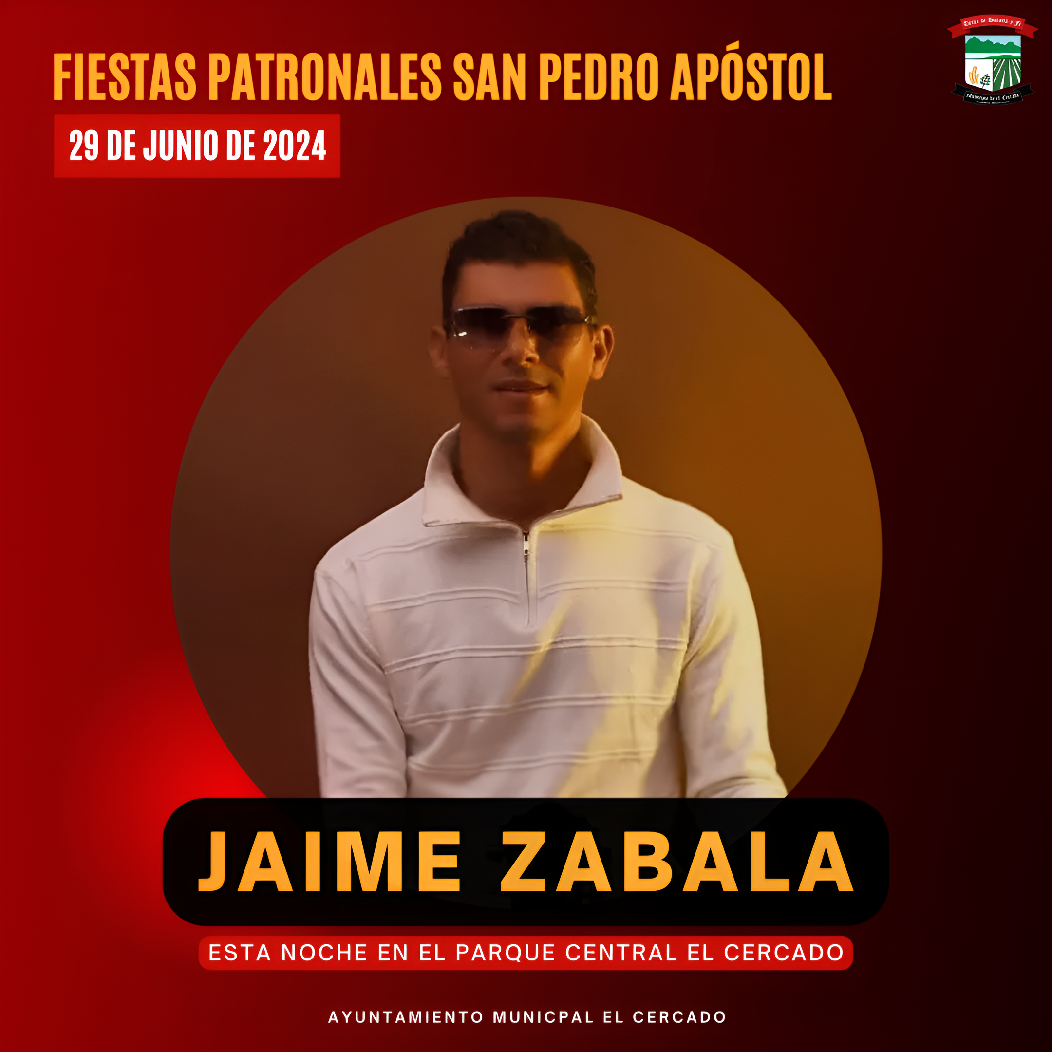No te pierdas esta noche la presentación del talentoso bachatero Jaime Zabala en las Fiestas Patronales San Pedro Apóstol. Prepárate para disfrutar de una noche llena de música y alegría.