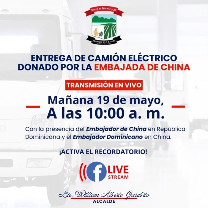 TRANSMISIÓN EN VIVO: ENTREGA DE CAMIÓN ELÉCTRICO DONADO POR LA EMBAJADA DE CHINA